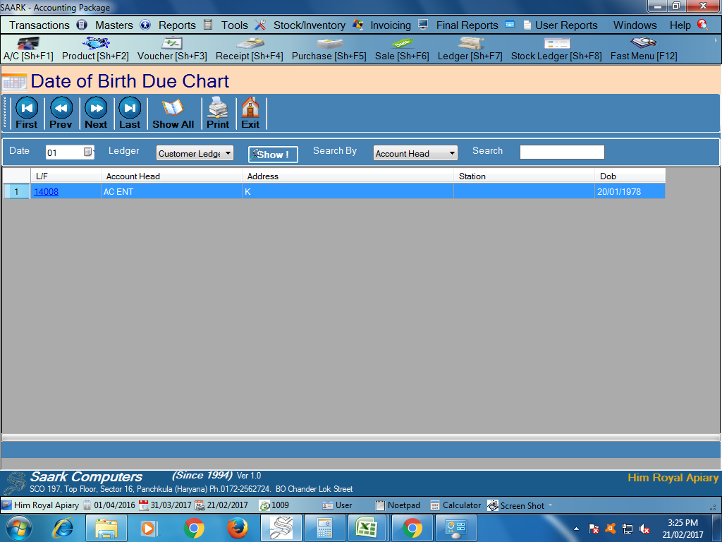Today I learnt a new thing on saark accounting software, it is birthday reminder. Whenever our customers or staff members birthday will come and it will be remind us.